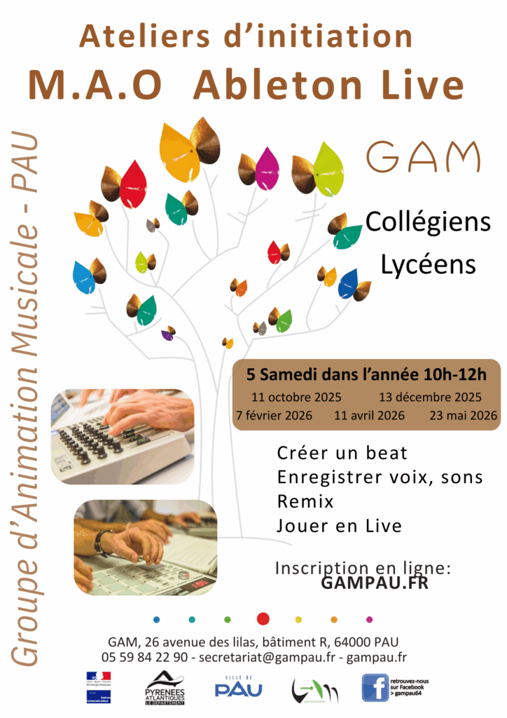 Le GAM propose cette année un cycle inédit d’ateliers de Musique Assistée par Ordinateur (M.A.O), spécialement pensés pour les collégiens et lycéens curieux de découvrir la création musicale numérique.